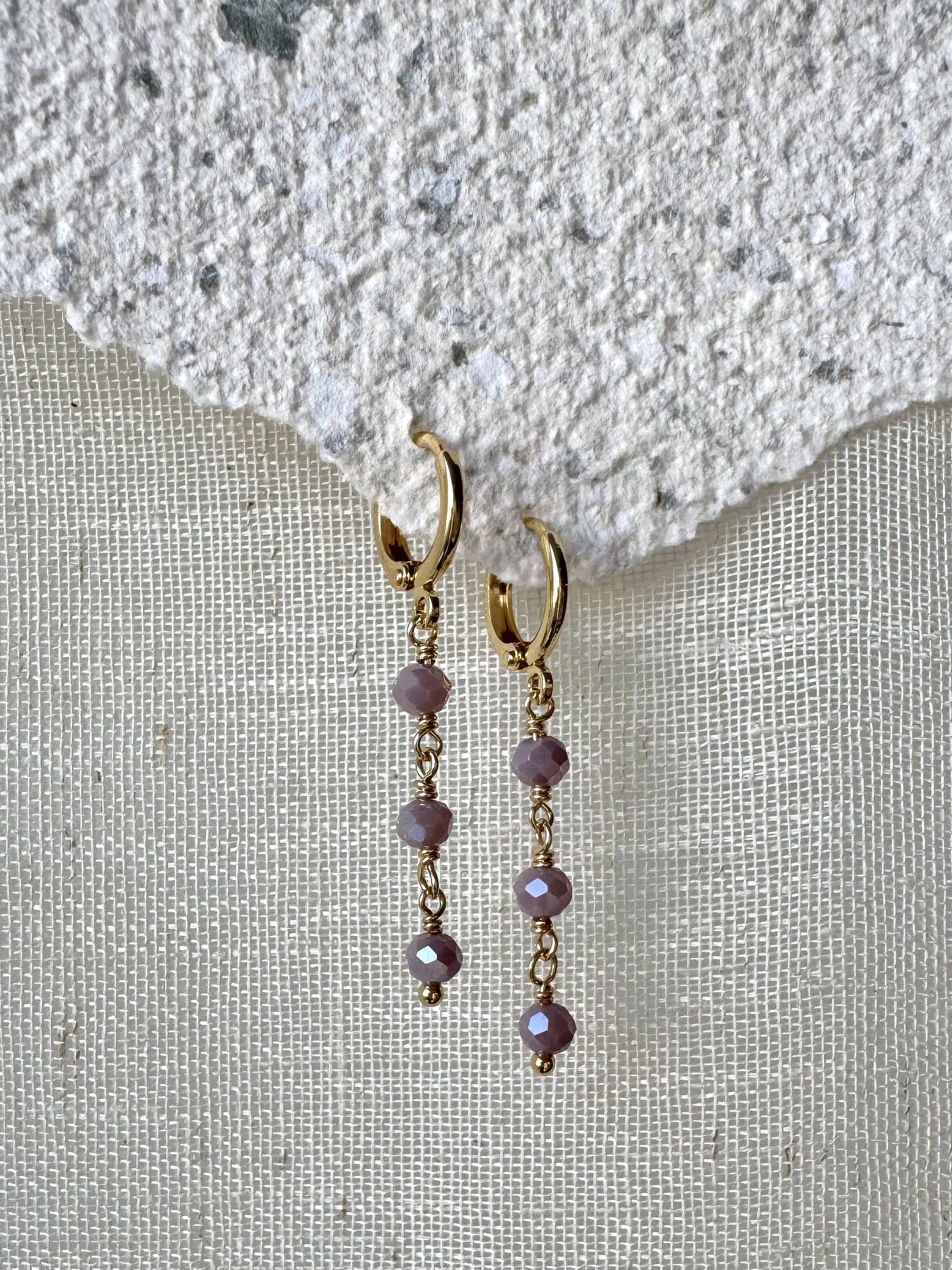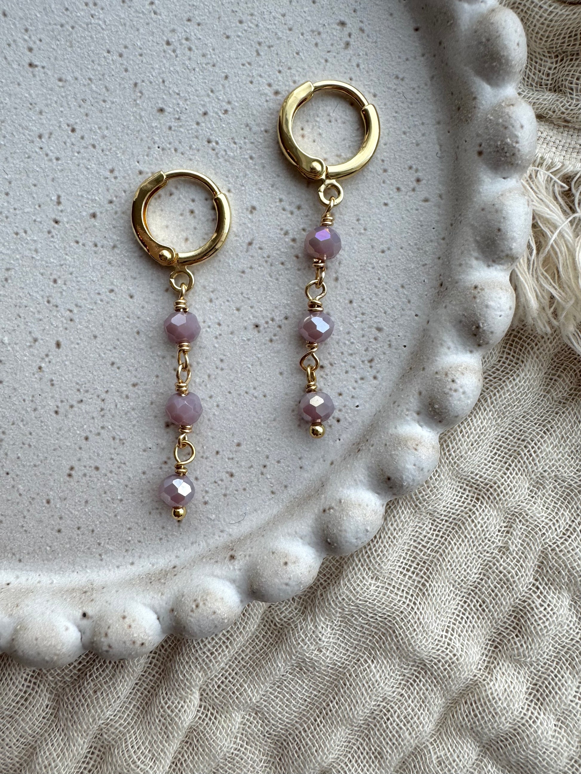 14k gullhúðaðir lokkar með þremur glerperlum