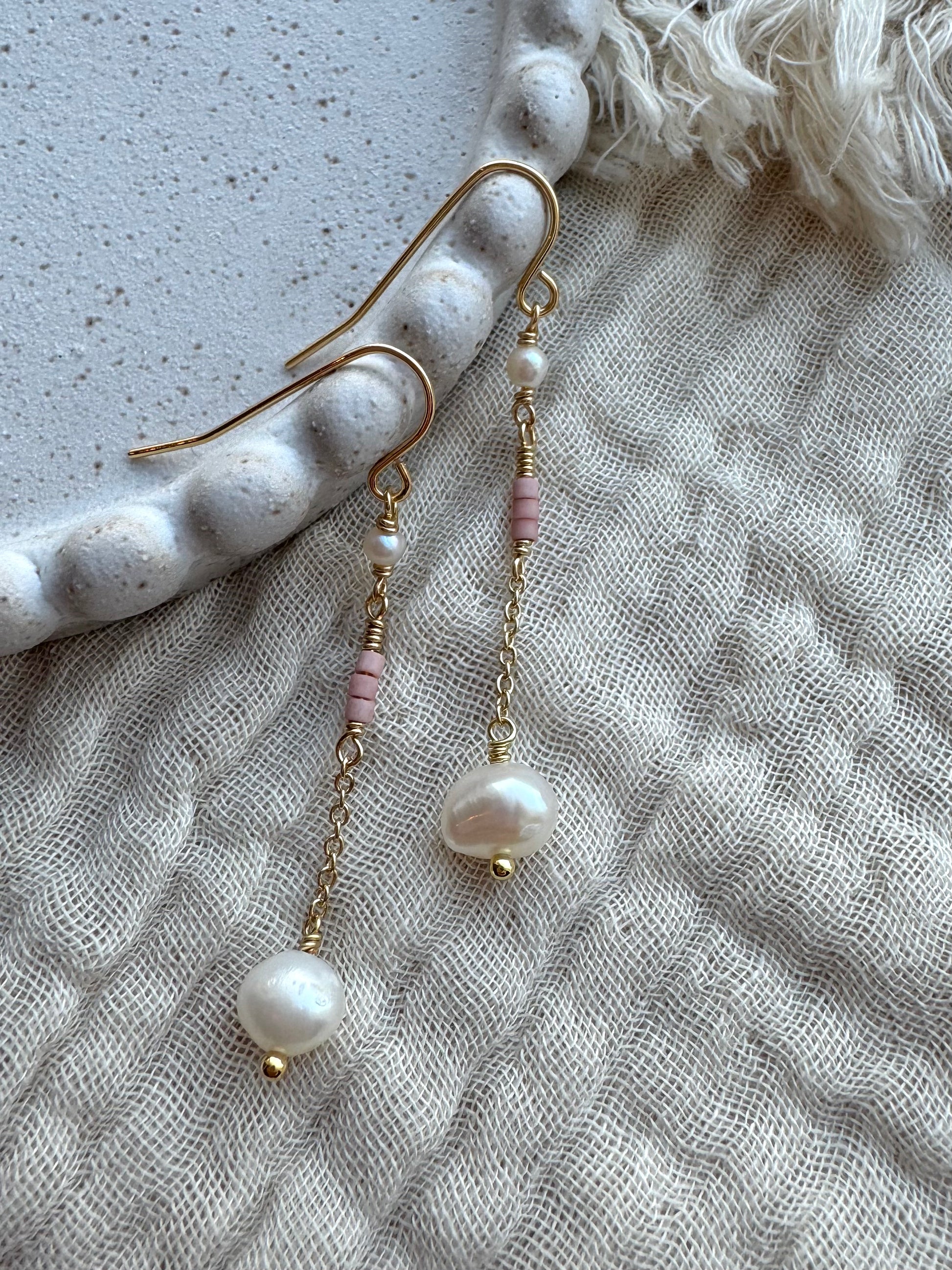 14k gullhúðaðir lokkar með ferskvatnsperlum og glerperlum