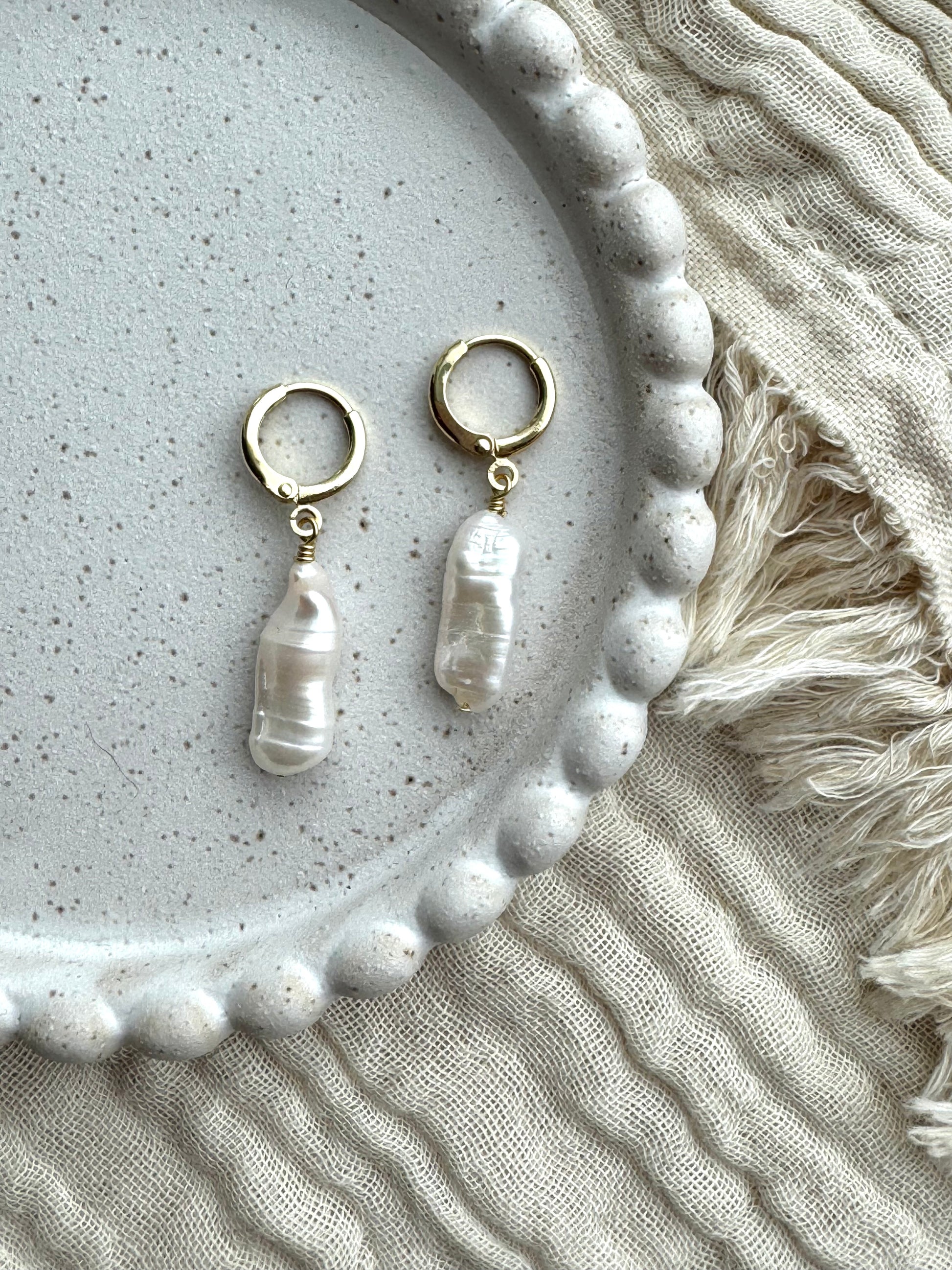 14k gullhúðaðir lokkar með óreglulegum ferskvatnsperlum